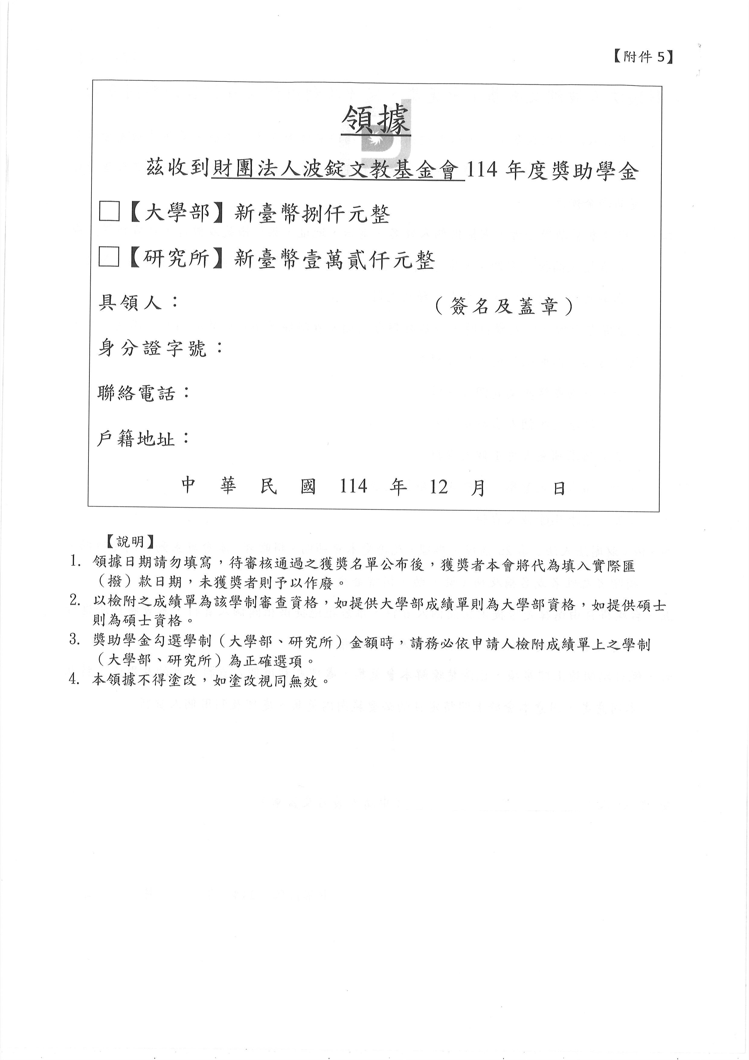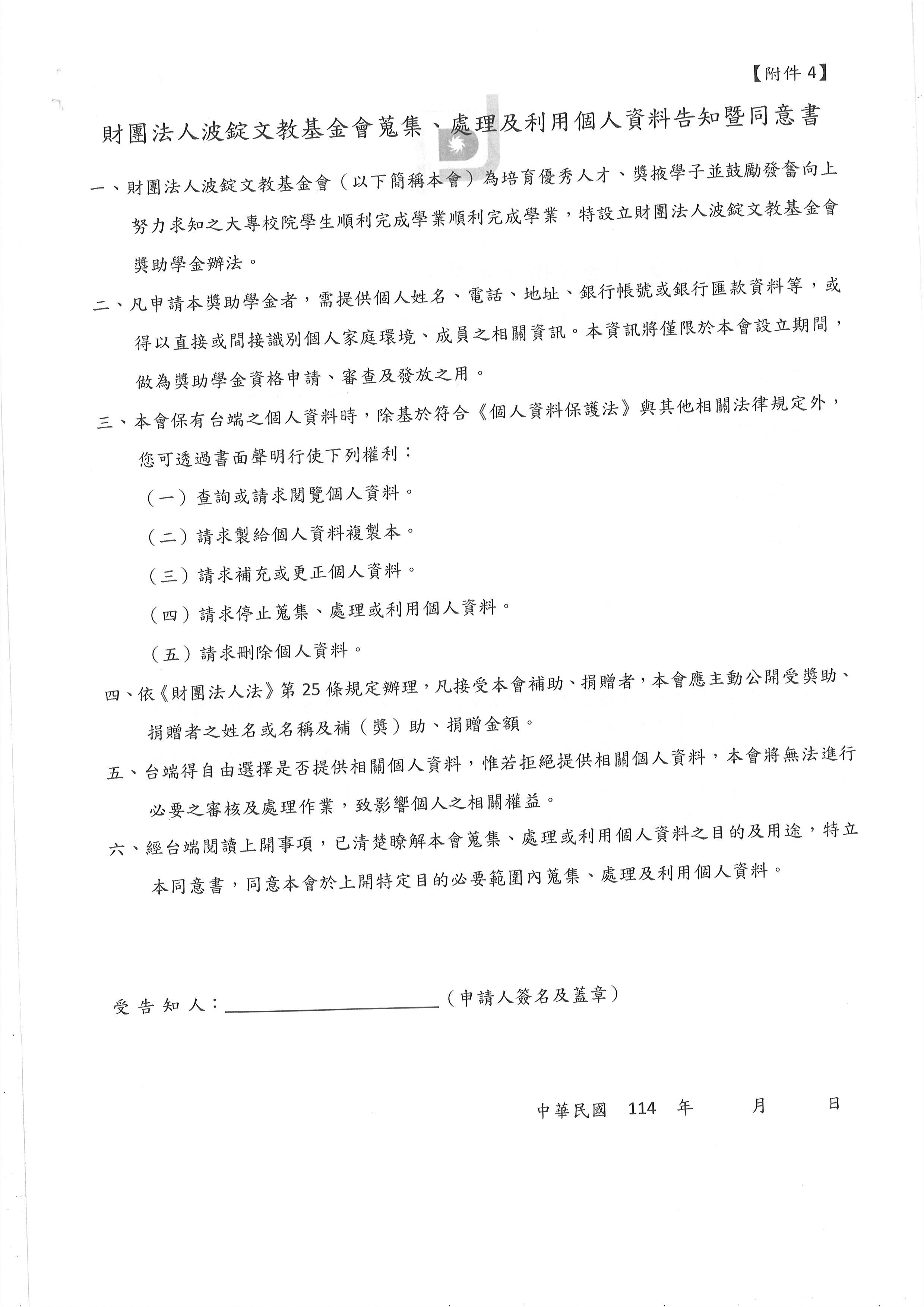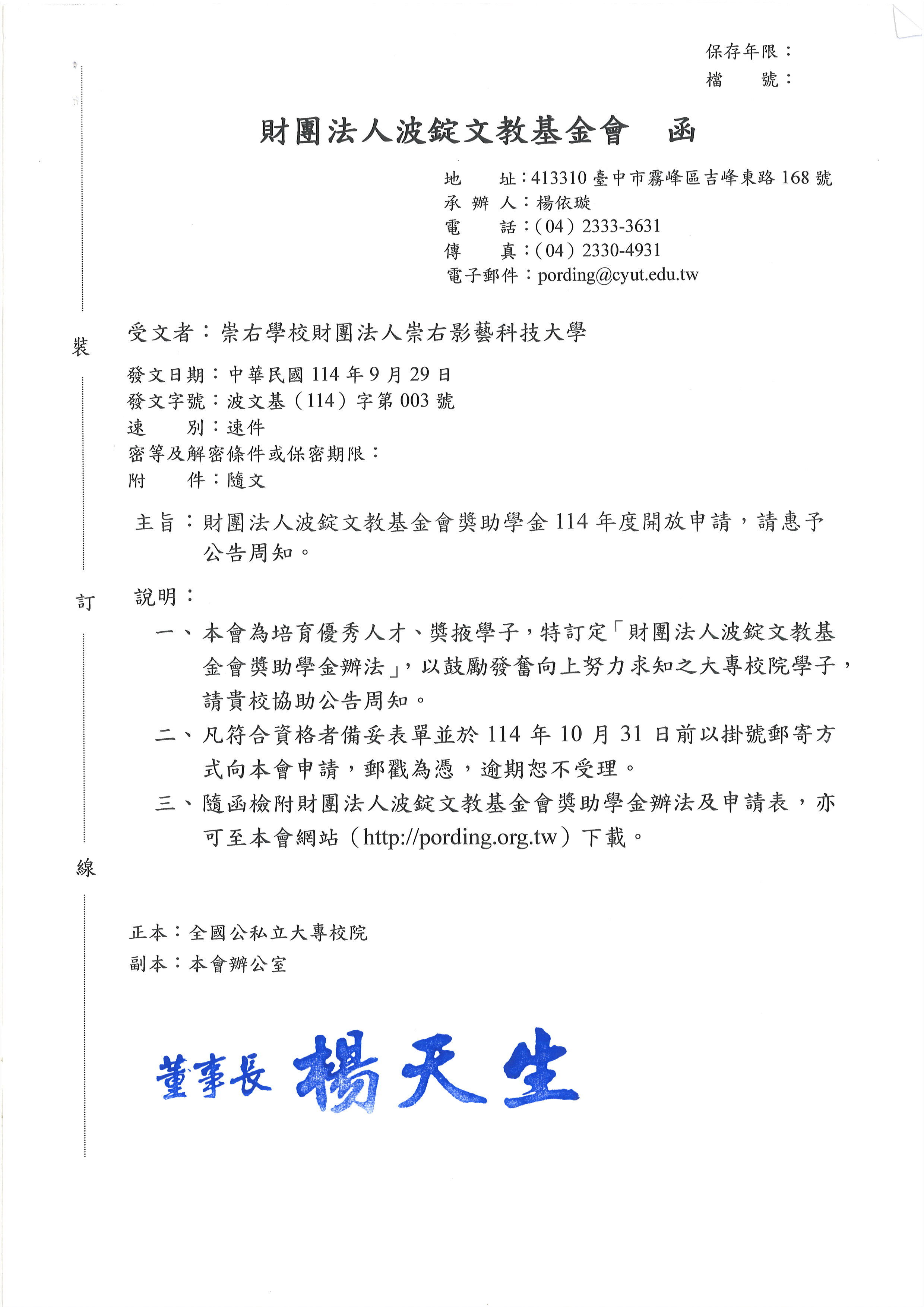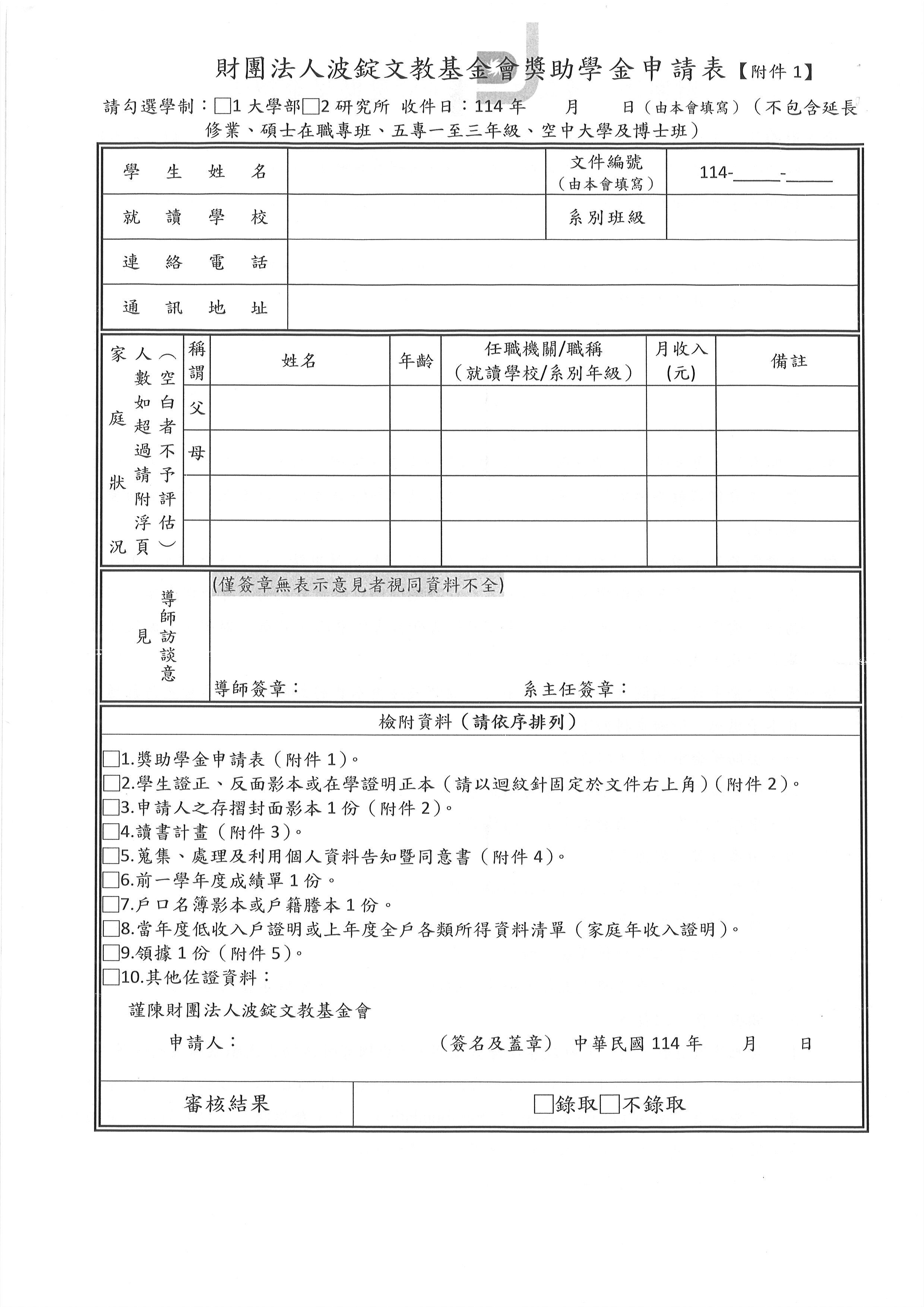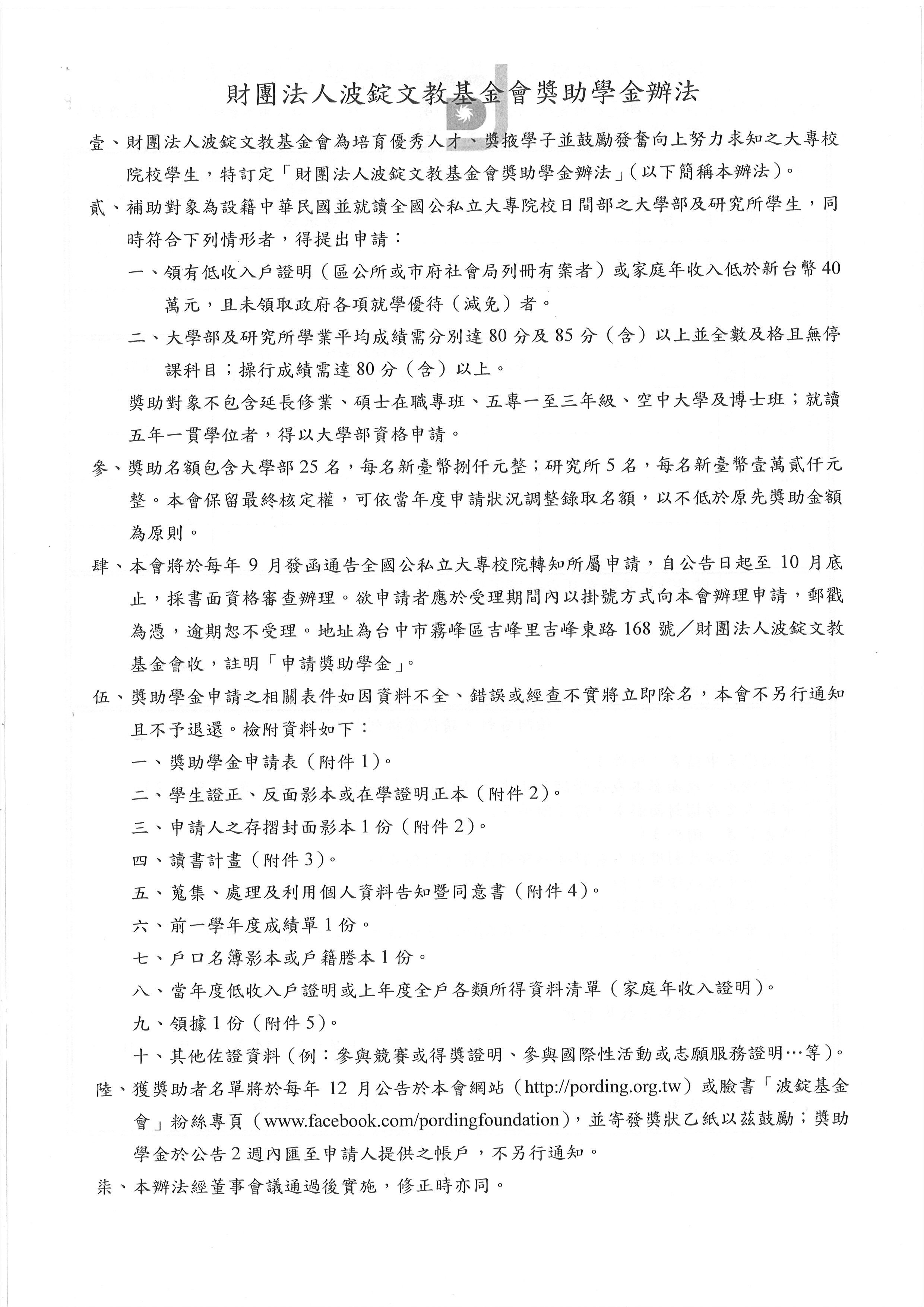 【訊息轉知】財團法人波錠文教基金會獎助金學金
