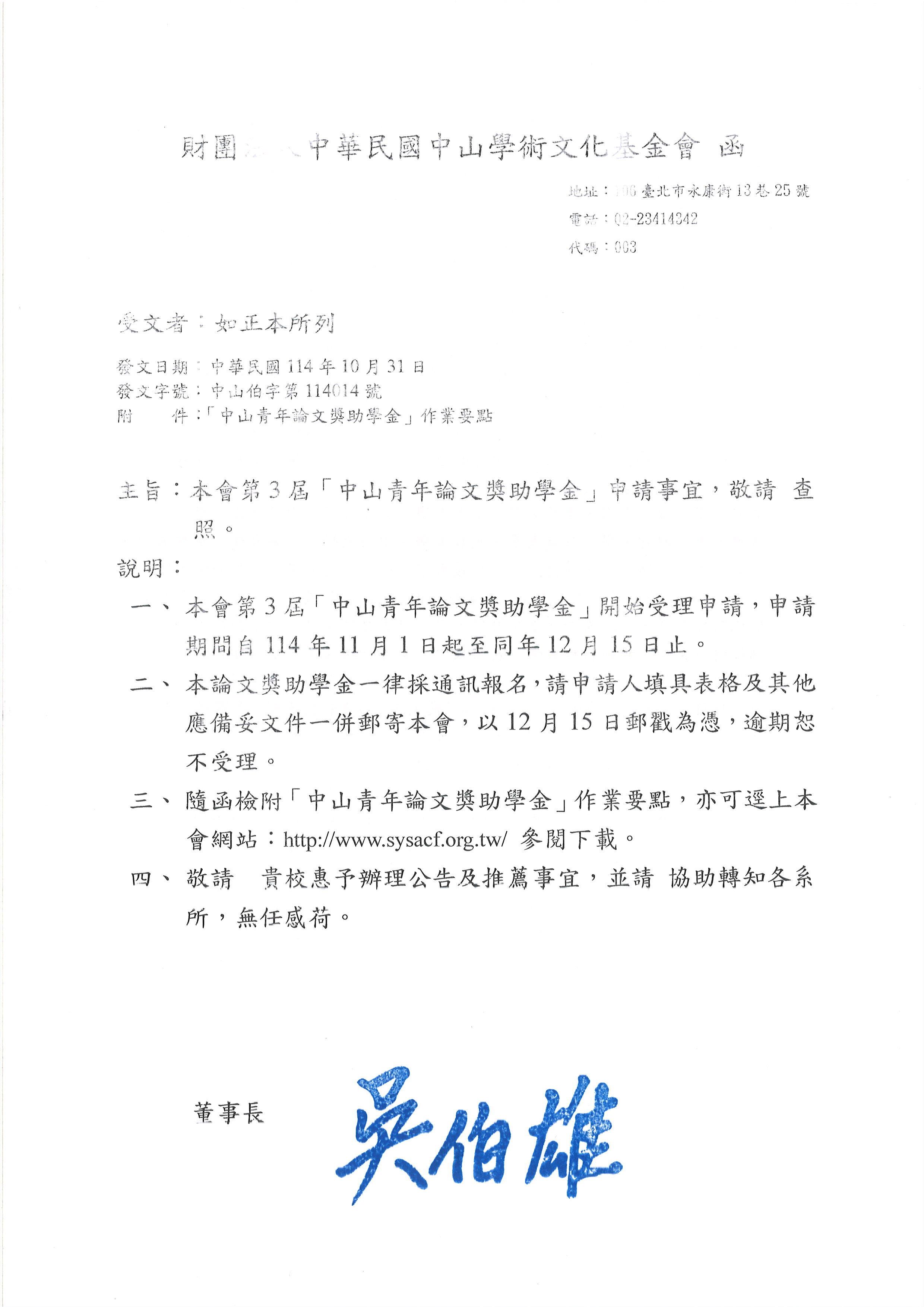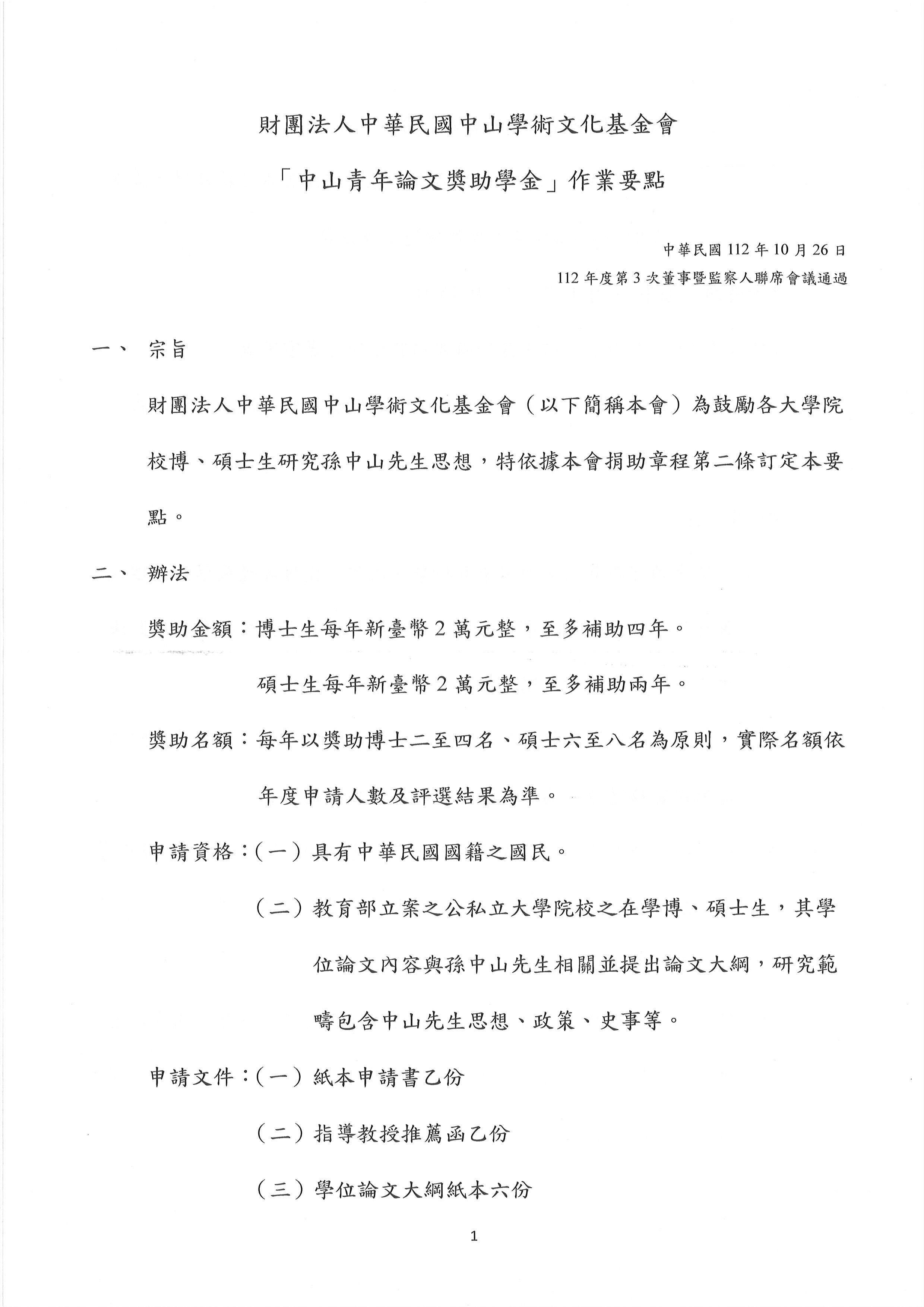 【訊息轉知】第3屆「中山青年論文獎助學金」