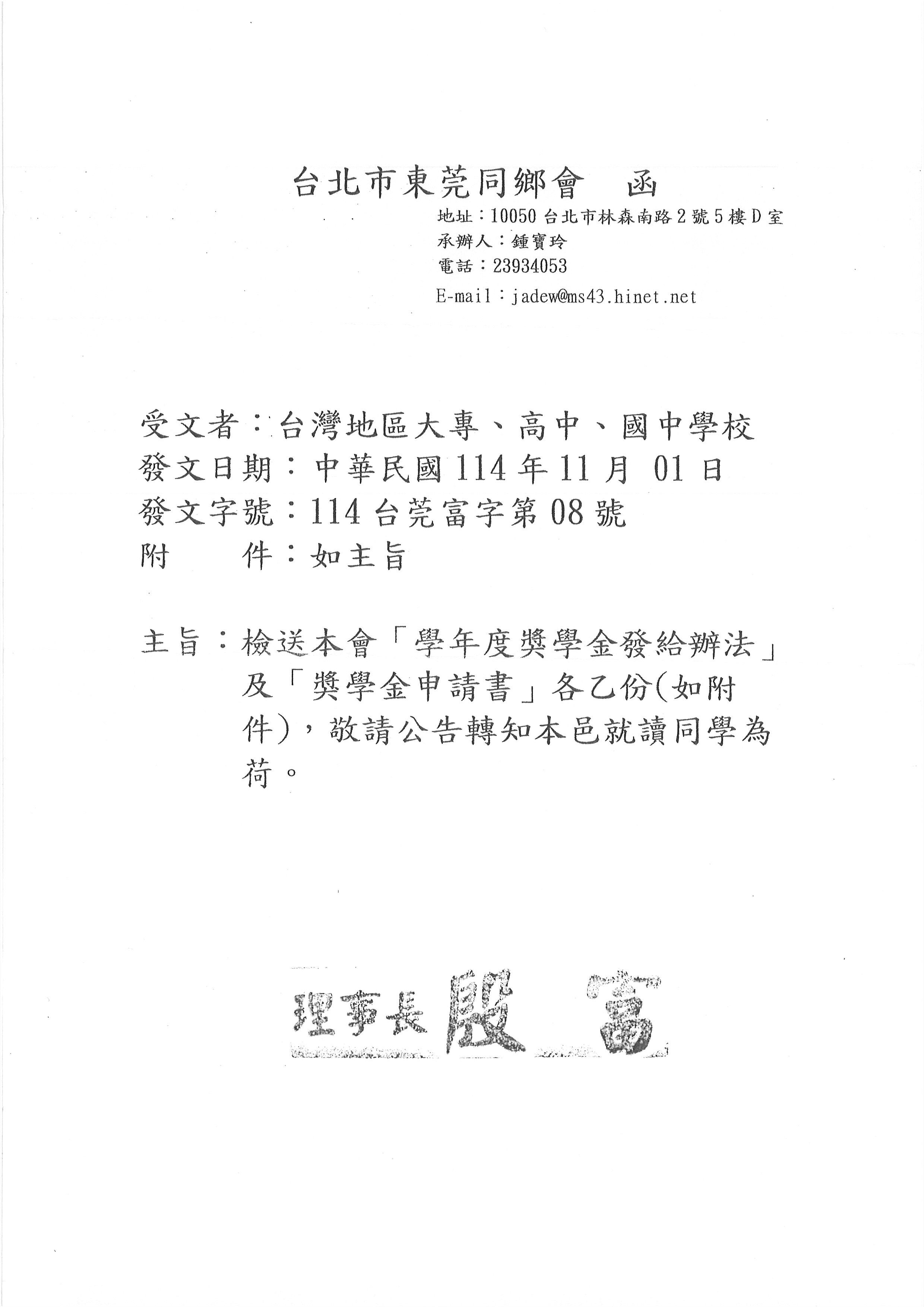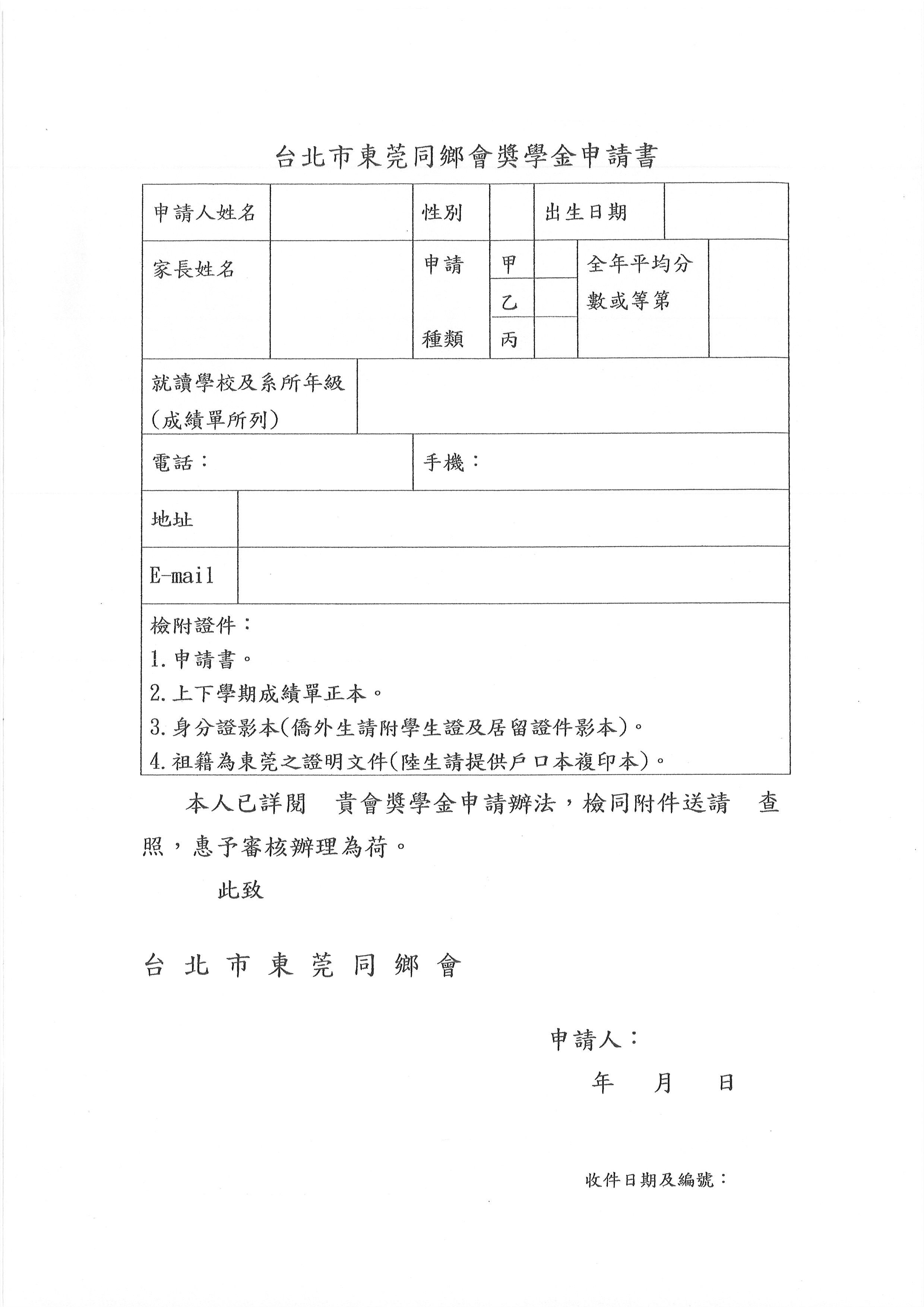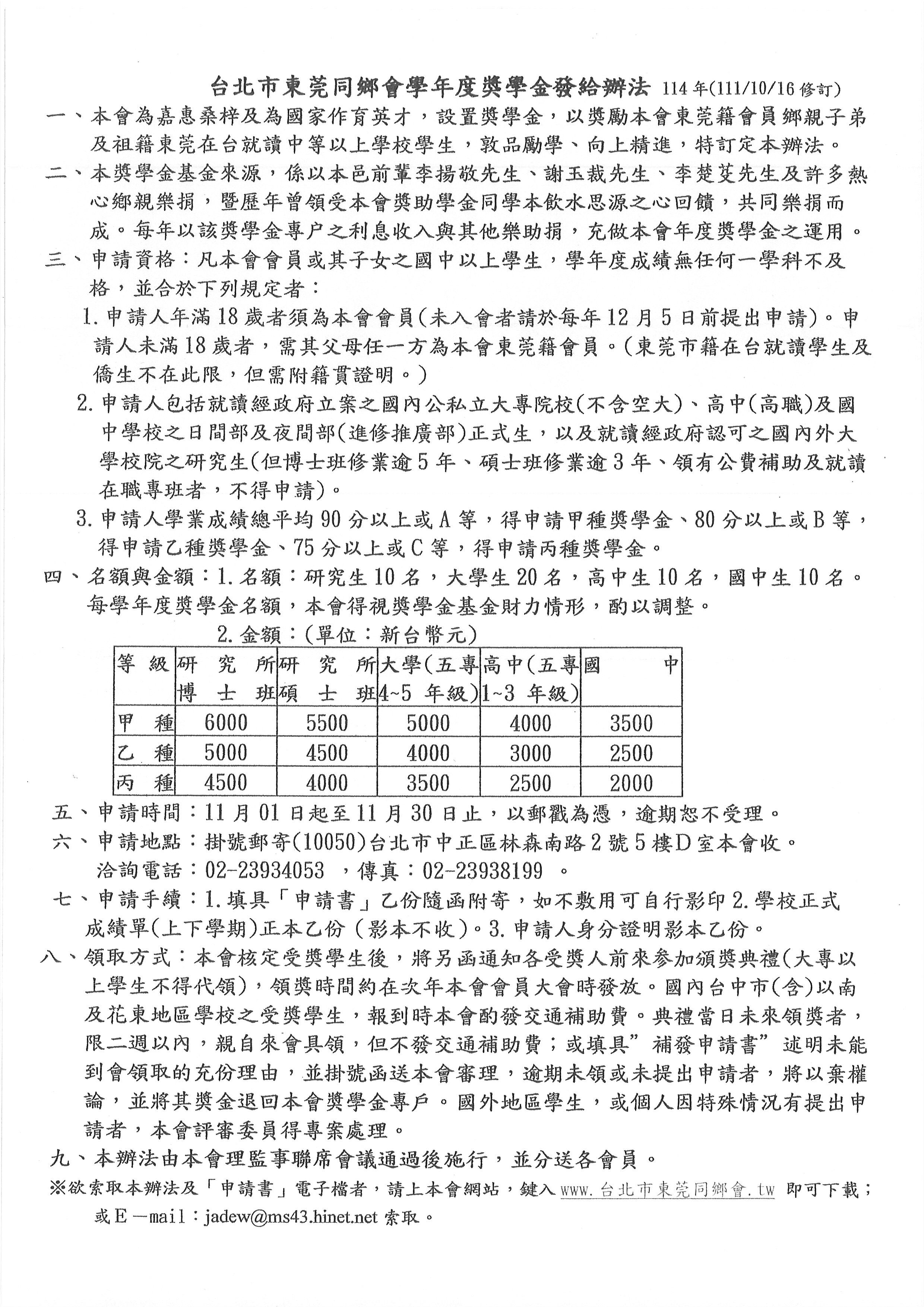 【訊息轉知】台北市東莞同鄉會學年度獎學金